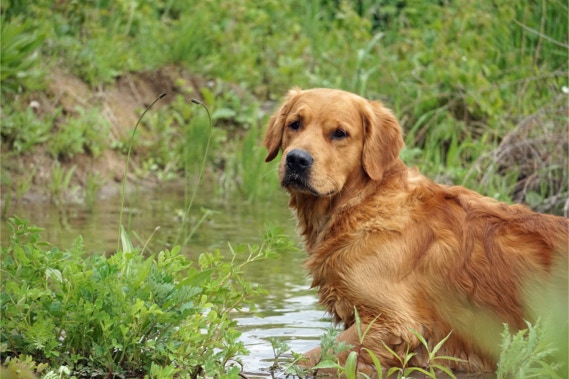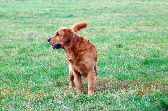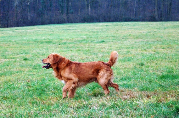 Die 24 Monate alte Golden Hündin zeigt sich heute ausgeglichen im Temperament und Bewegungsverhalten, sie